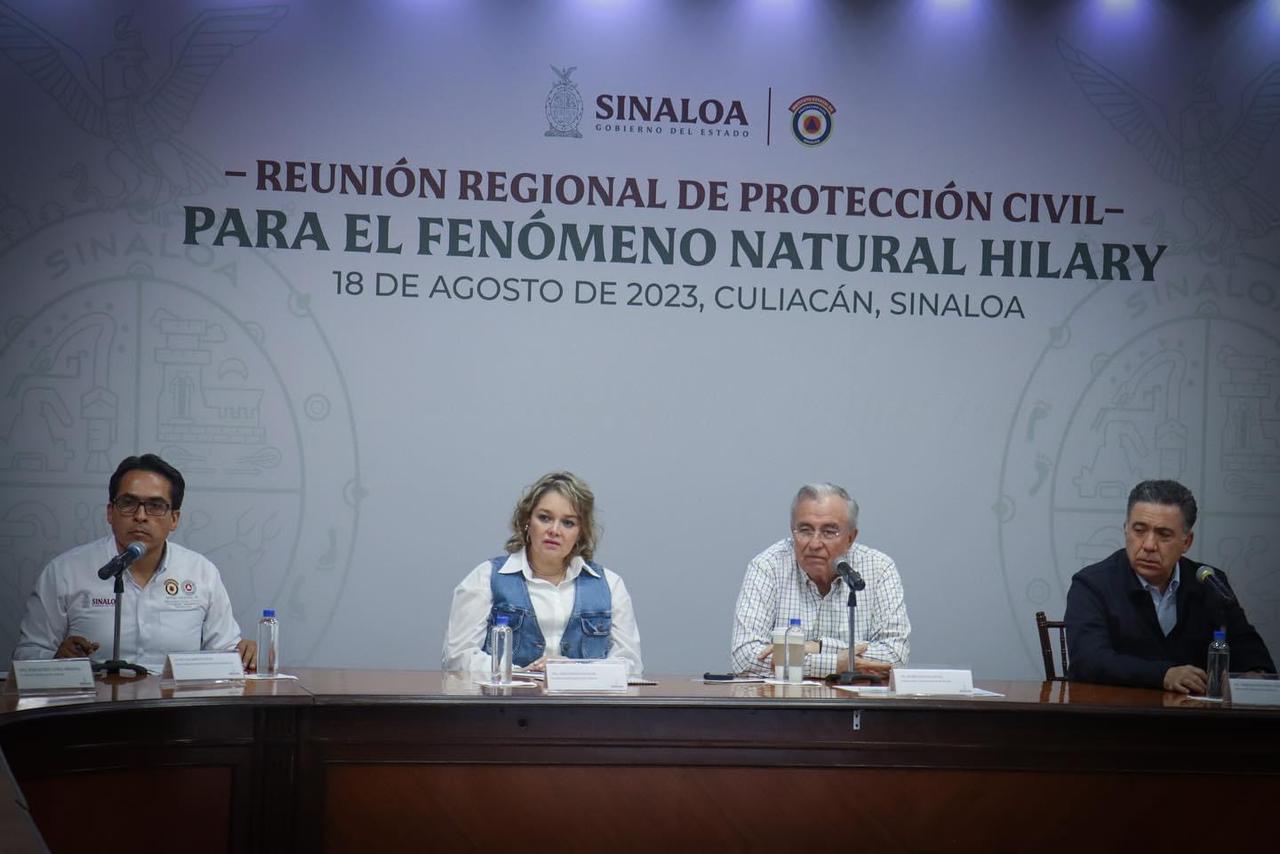 El mandatario estatal se reunió con todos los titulares de las dependencias relacionadas con la atención a la población a causa de daños provocados por fenómenos naturales, encabezados por la presidenta del Sistema DIF Sinaloa, Eneyda Rocha Ruiz, y el director general del Instituto Estatal de Protección Civil, Roy Navarrete Cuevas, contando también con la asistencia del comandante de la Novena Zona Militar, general de Brigada, Alfredo Salgado Vargas; representantes de la Secretaría de Marina, Guardia Nacional, de la Comisión Federal de Electricidad, Conagua, organismos civiles de auxilio como Cruz Roja Mexicana y Bomberos, y las alcaldesas y alcaldes de los municipios donde se registraron los primeros daños, que son Navolato, Elota, Angostura, Badiraguato y Salvador Alvarado.